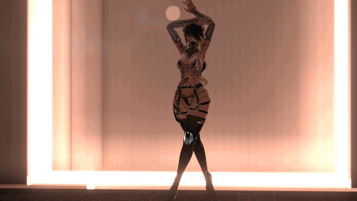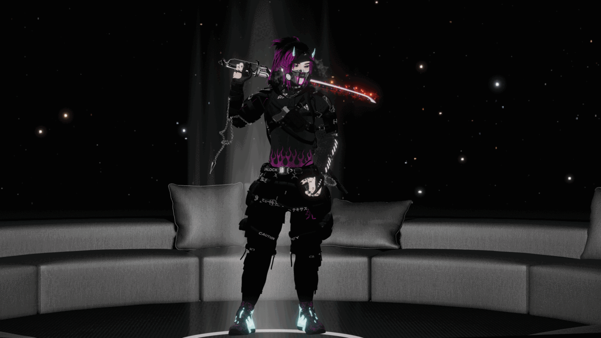 Jinxxy.com tags: vrchat, ears, belt, outfit, mask, pants, shoes, sneaker, sweater, weapon, underwear, nsfw, female, dps, physbone, cyber, cyberpunk